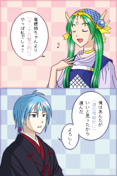 うちの当主と竜実ちゃん。話が噛み合ってないけどなぜか二人は仲良し。
