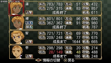 まずはアナザー1本目、大江山越え直前に初代が桃果仙と交神して、生まれた双子で最終戦に行ってみた。本ルートより1ヶ月早い1019年11月でクリア。
